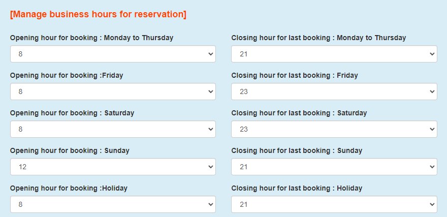 1.’Enable Online Booking’ : If you uncheck this, close all time slot until checking again.