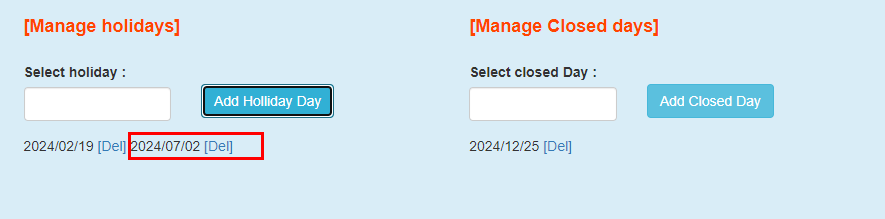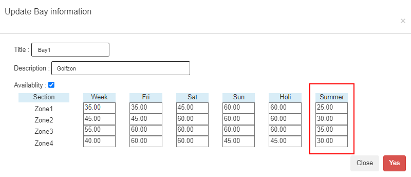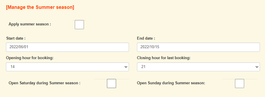 ‘Apply summer season’ : If you want to apply the summer season rate and business hours.