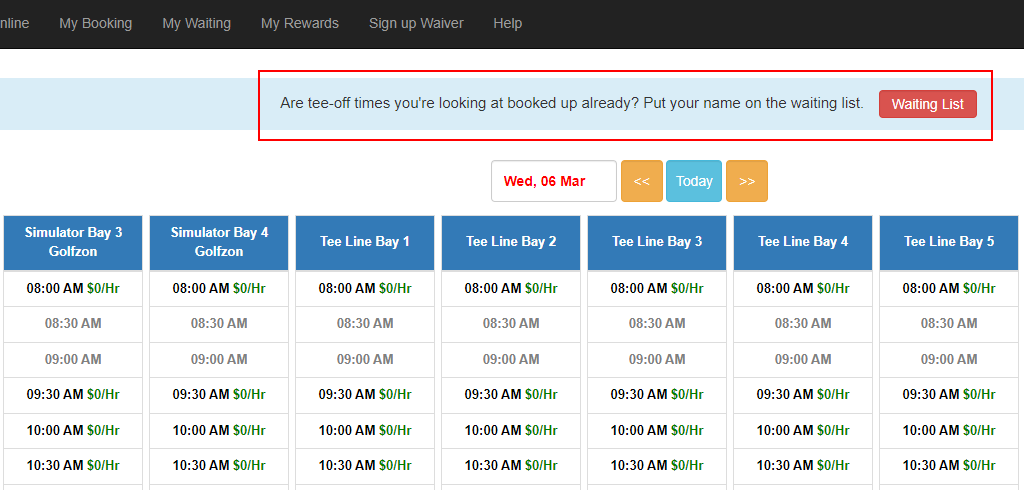 2.Allow customer can update their bay and tee-off time until before deadline for cancellation.